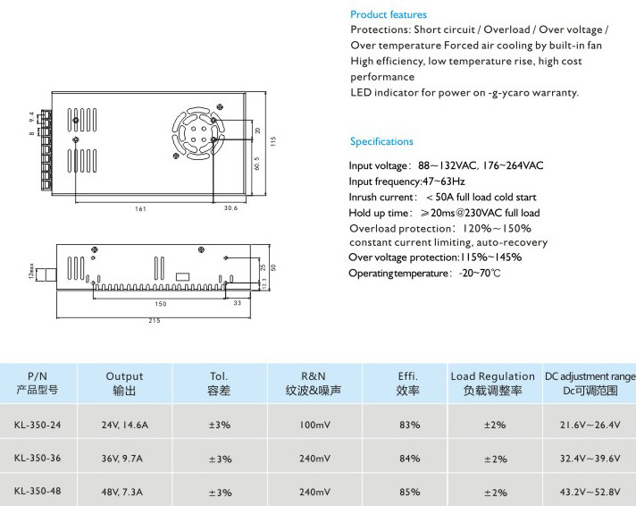 高效率、低溫升高性價(jià)比 適用于LED顯示、工業(yè)控制 輸入電壓:88-132VAC,176-264VAC 輸入頻率:47~63Hz 沖擊電流:<50A滿載冷態(tài) 保持時(shí)間:≥20ms@230VAC滿載 過載保護(hù):120%-150%限流保護(hù),自動(dòng)恢復(fù) 過壓保護(hù):115%~145% 運(yùn)行溫度:-20-70℃" />